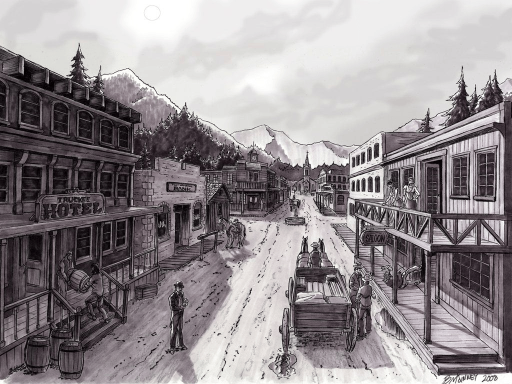 A classic western frontier scene, echoing the sets and moods that defined 20th-century television’s golden age of Westerns.
