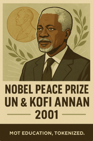 📅 October 12, 2001 – The Nobel Peace Prize centennial is awarded to the United Nations and secretary-general Kofi Annan.