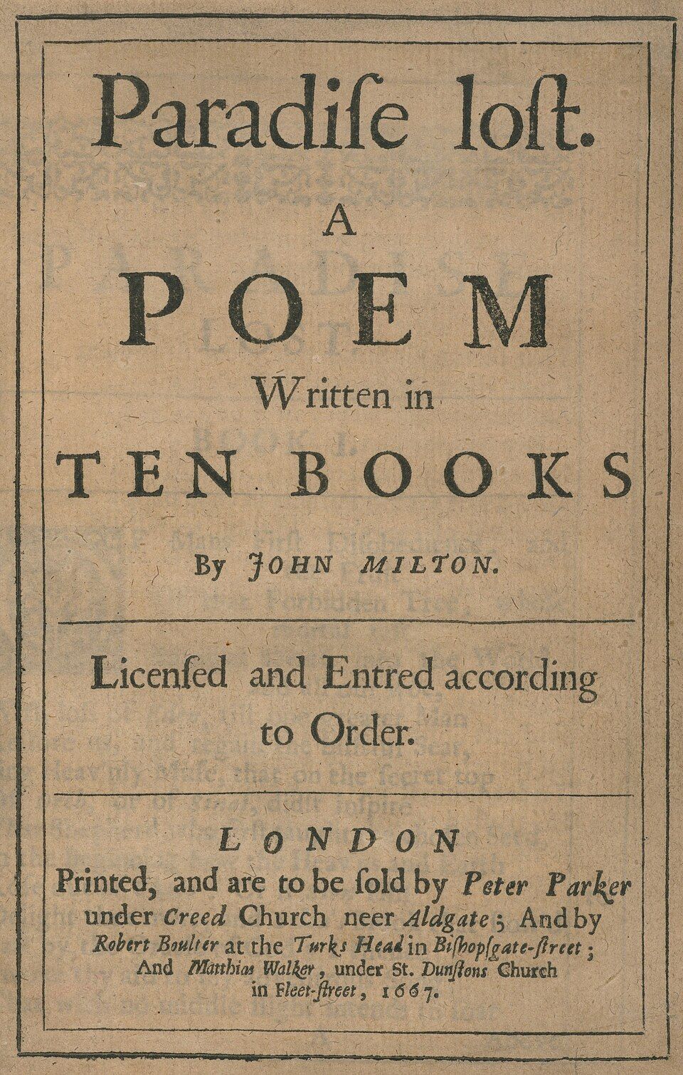 The title page of the first edition of Paradise Lost, 1667 — one of the most consequential publications in the history of English literature, sold for £5.