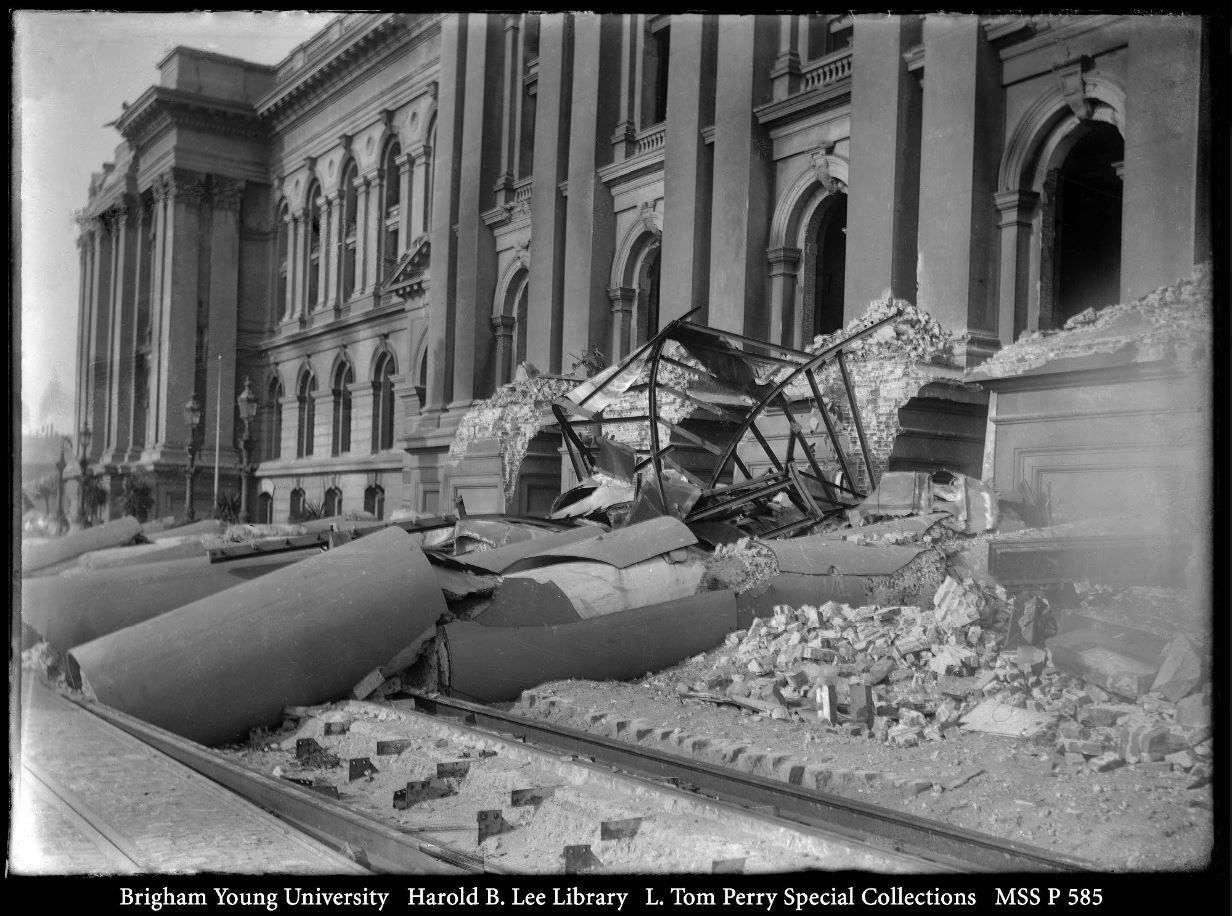 The ruins of City Hall after the 1906 earthquake — the $6 million building, completed just eight years earlier, was destroyed in seconds by the quake.