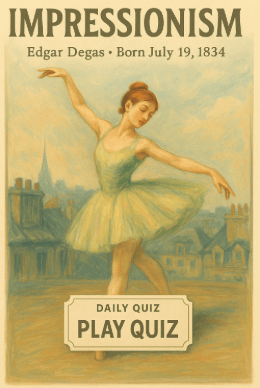 On July 19, 1834, Edgar Degas was born in Paris, France. Though famously resistant to being called an “Impressionist,” Degas was a cornerstone of the movement. His focus on dancers, theatre, and everyday scenes, combined with radical framing and bold technique, helped define one of the most important periods in art history.